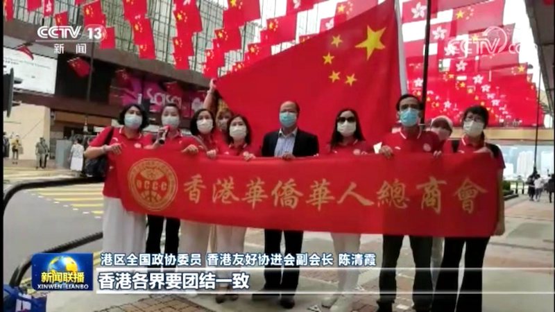 港澳各界人士表示,习近平主席在庆祝中国共产党成立100周年大会上的讲话令人倍受鼓舞。连日来,香港的街巷中鲜艳的五星红旗和区旗迎风飘扬,处处闪耀着中国红。很多香港市民也自发走上街头舞动国旗和区旗,表达对国家和香港的祝福。